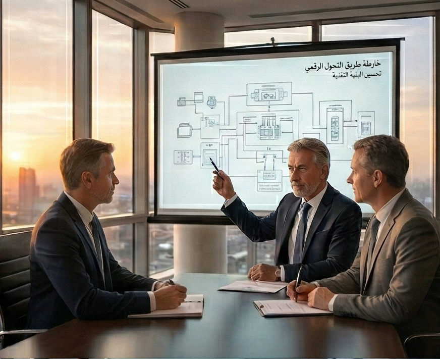 تقديم استشارات تقنية متخصصة لدعم التحول الرقمي وتحسين البنية التقنية.